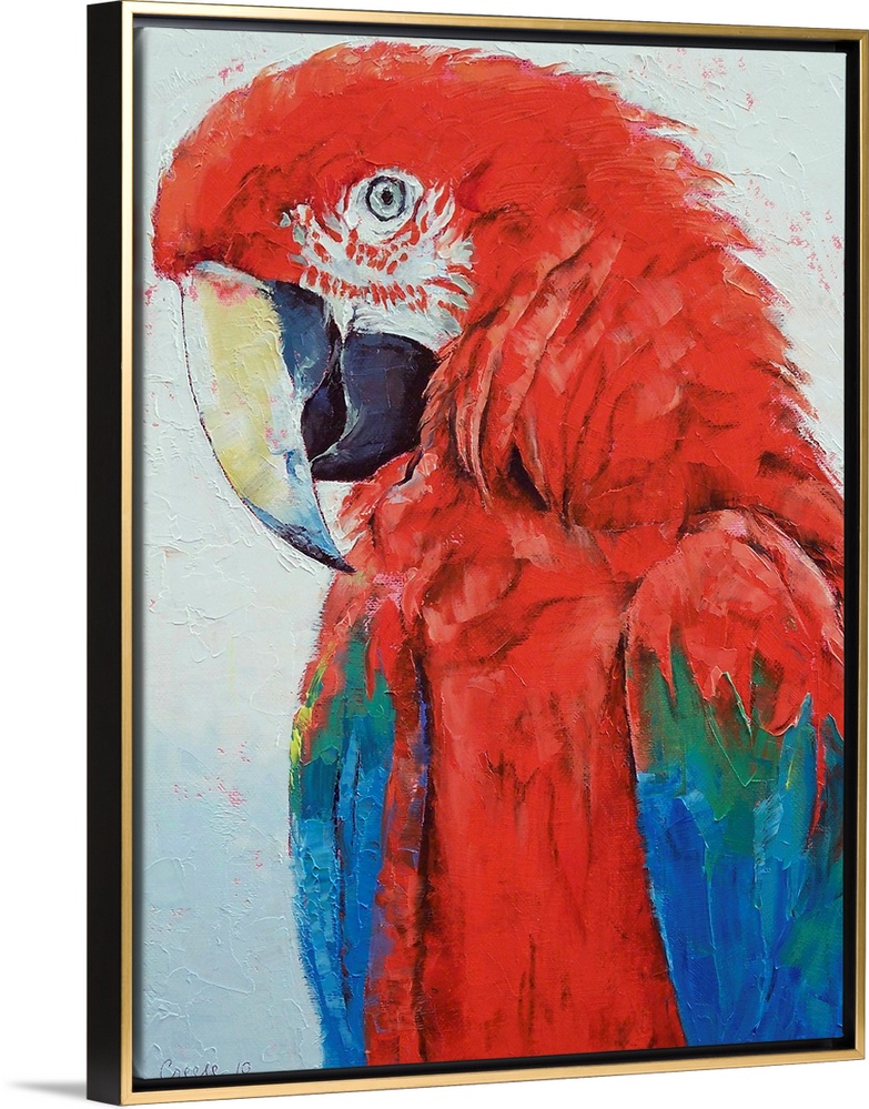 Art Contemporary Art Michael Creese Painting Red Wall Art Wildlife Bird Parrot Tropical Birds