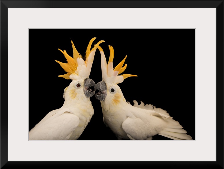 <p>Critically endangered citron crested cockatoos (Cacatua sulphurea citrinocristata) at Jurong Bird Park.</p>