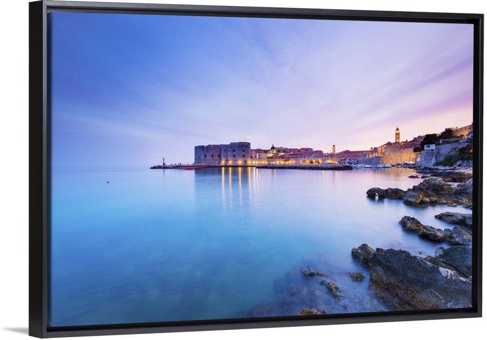 <p>Croatia, Dalmatia, Dubrovnik, Old town, Sunset over the city walls and harbour.</p>
