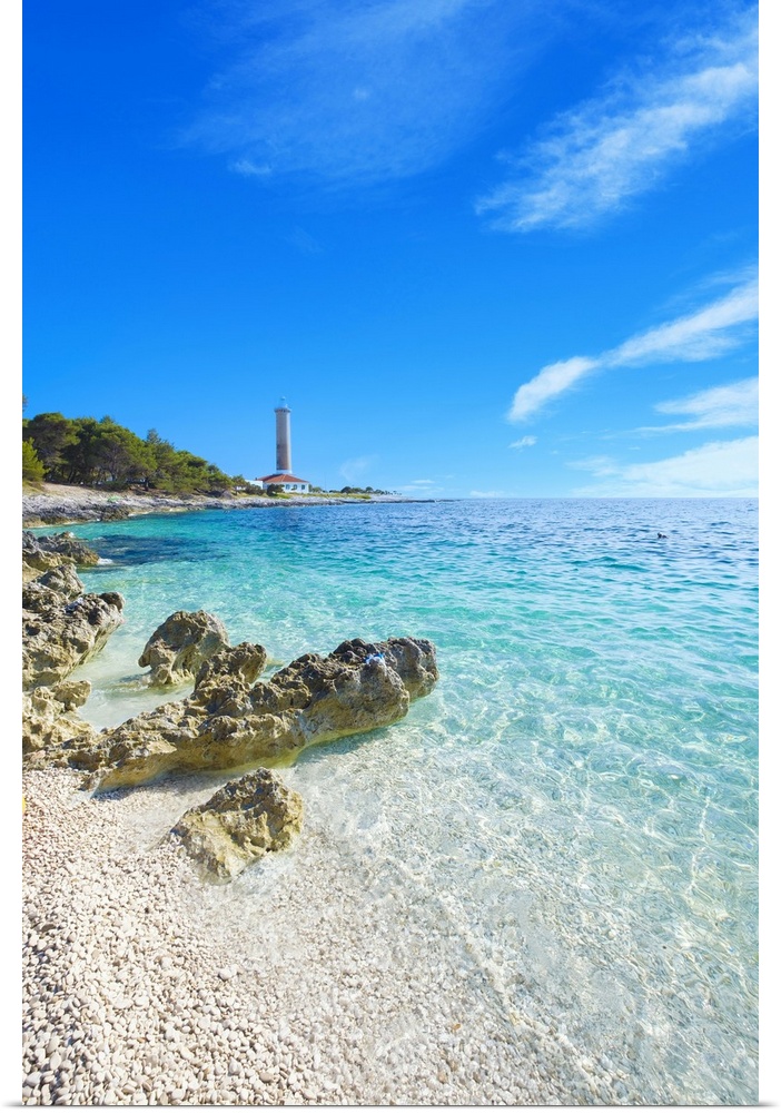 <p>Croatia, Dalmatia, Kornati islands, Dugi Otok island, Balkans, Mediterranean sea, Adriatic sea, Veli Rat lighthouse and beach.</p>