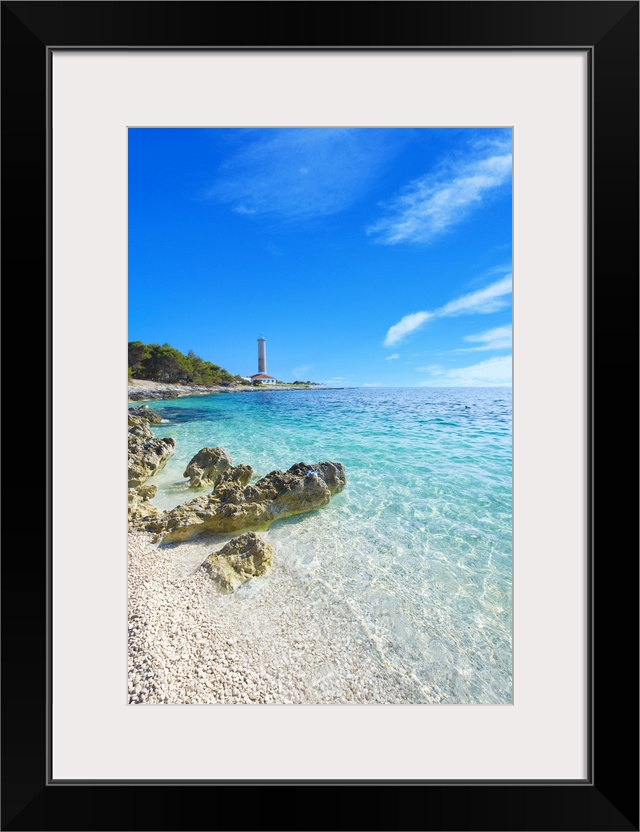 <p>Croatia, Dalmatia, Kornati islands, Dugi Otok island, Balkans, Mediterranean sea, Adriatic sea, Veli Rat lighthouse and beach.</p>