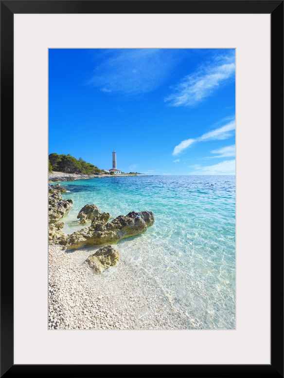<p>Croatia, Dalmatia, Kornati islands, Dugi Otok island, Balkans, Mediterranean sea, Adriatic sea, Veli Rat lighthouse and beach.</p>