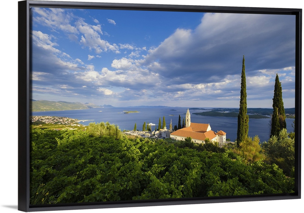 <p>Croatia, Dalmatia, Peljesac Peninsula, Mediterranean sea, Adriatic sea, Adriatic Coast, Orebic, Last lights on the monastery of Our Lady of the Angels.</p>