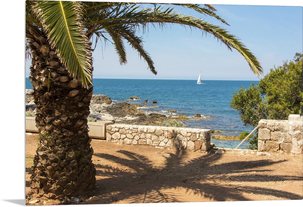 <p>Croatia, Dubrovnik, Lokrum Island, Sailboat Passes In Calm Adriatic Sea</p>