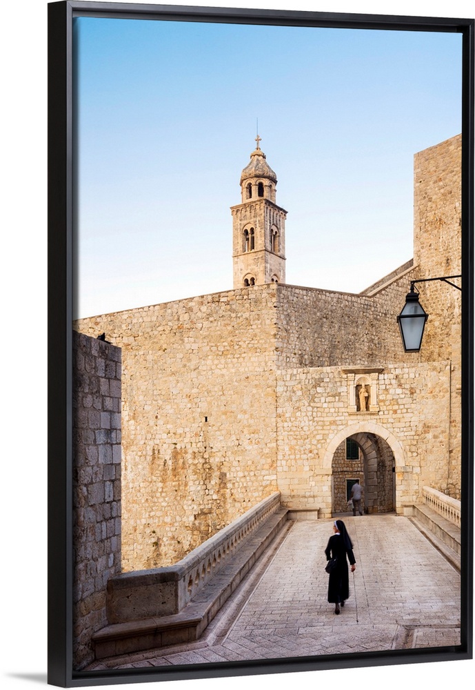 <p>Croatia, Dubrovnik, Nun Walking Through The Old Town</p>