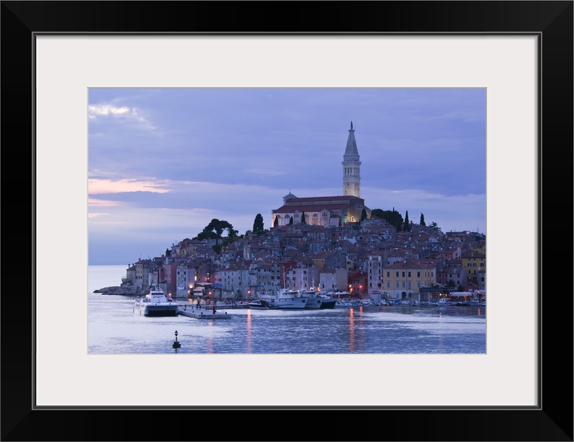 <p>CROATIA-Istria-ROVINJ:.ROVINJ harbor view with Cathedral of St. Euphemia / Evening</p>