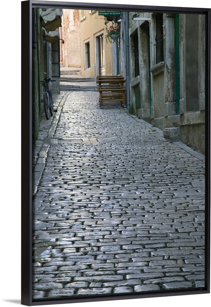 <p>CROATIA, Istria, ROVINJ. ROVINJ old town cobbled street</p>