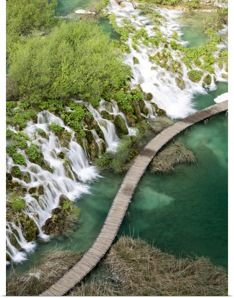 <p>Croatia, Plitvice Lakes National Park. Boardwalk along the Plitvice lakes national park as seen from above.</p>