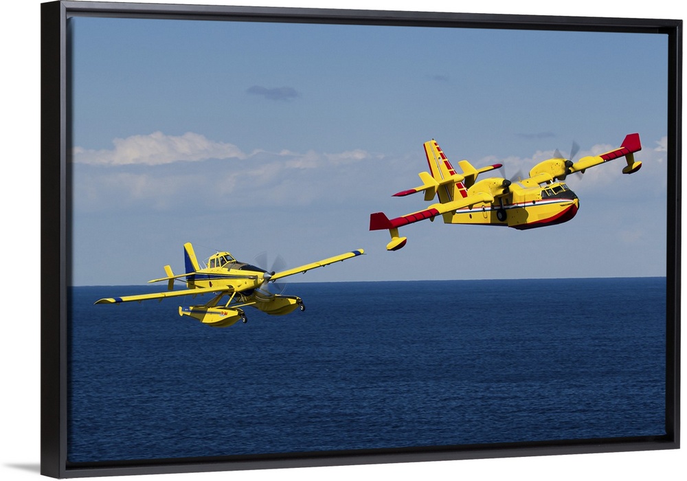 <p>Croatian Air Force AT-802 and CL-415 firefighting aircraft flying in formation during a training flight near their homebase Zadar, Croatia.</p>