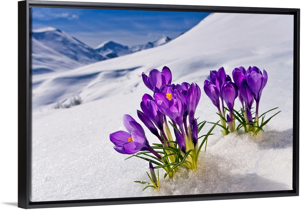 <p>A group of flowers grows up from the snow-covered ground in Alaska (AK).</p>