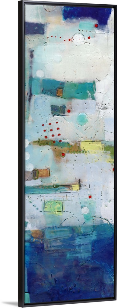 <p>This contemporary artwork features mottled areas of bright color with textured lines and dots that exemplifies an industrial chic style.</p>