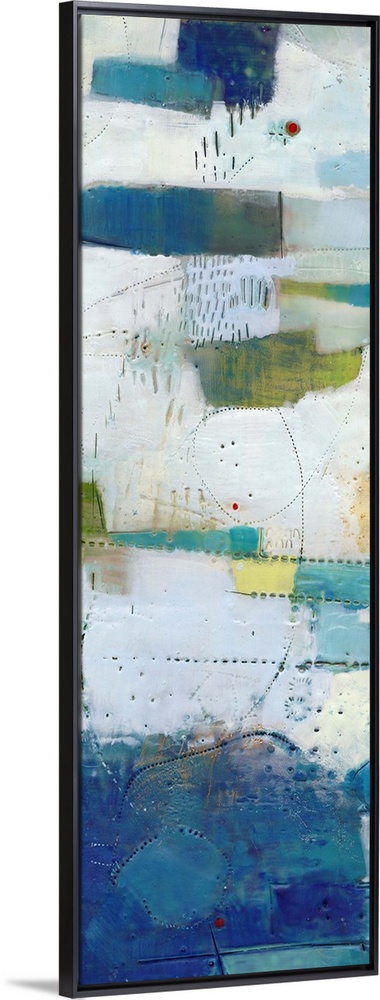 <p>This contemporary artwork features mottled areas of bright color with textured lines and dots that exemplifies an industrial chic style.</p>
