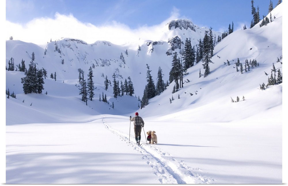 <p>Cross country skier and dog touring in Heather Meadows Recreation Area, North Cascades Washington</p>