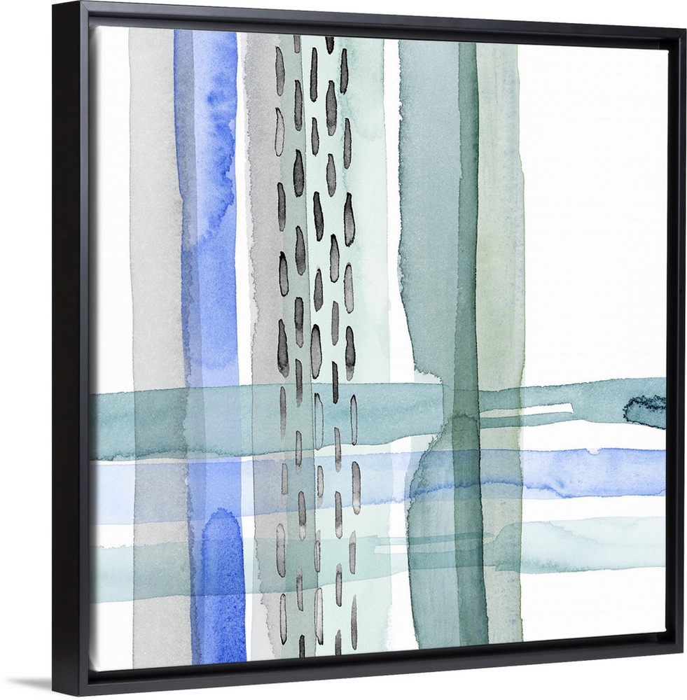 <p>Abstract watercolor painting made with cool tones and movement on a square background.</p>
