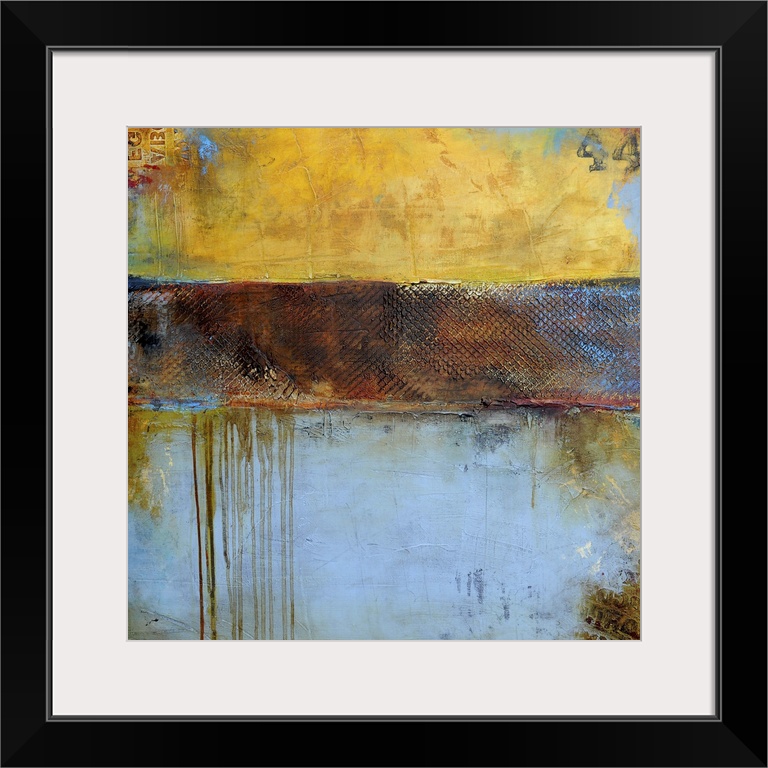 <p>Contemporary abstract painting of a color-field of weathered yellow brown and pale blue tones.</p>