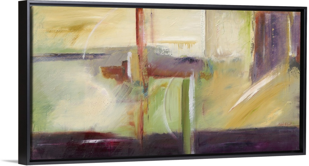 <p>Abstract painting with deep purple, red, green, yellow, gold, and white hues.</p>