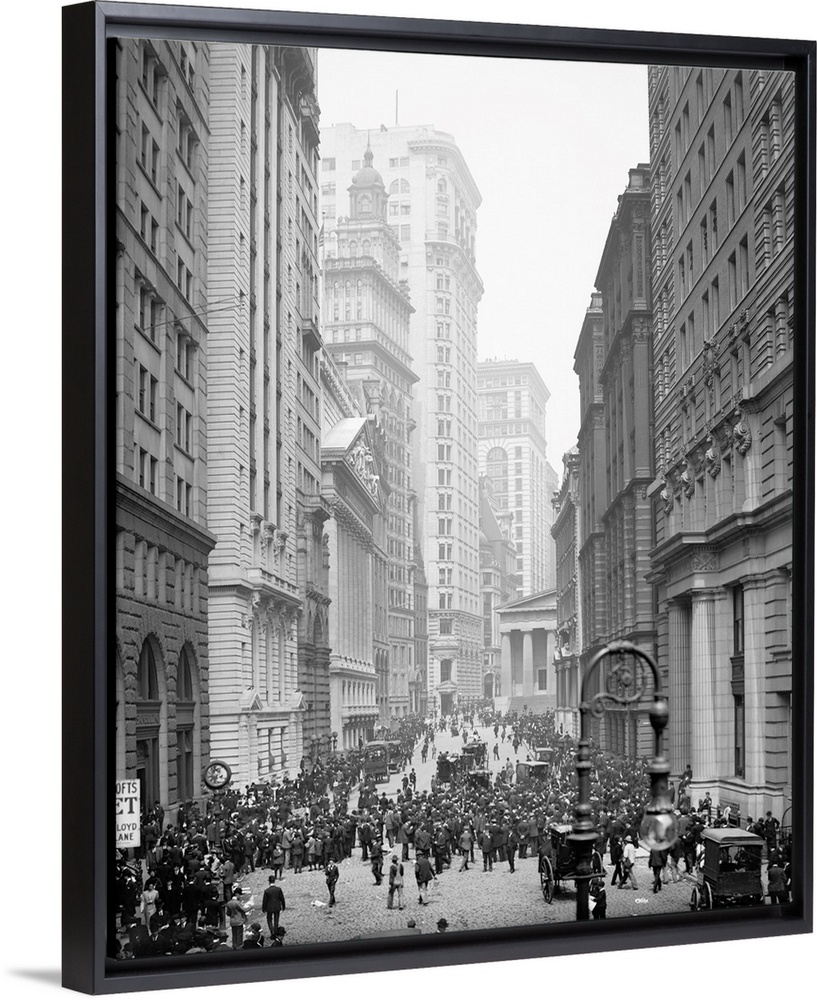<p>Crowd of men involved in curb exchange trading on Broad Street in New York City. Photograph, c1905.</p>