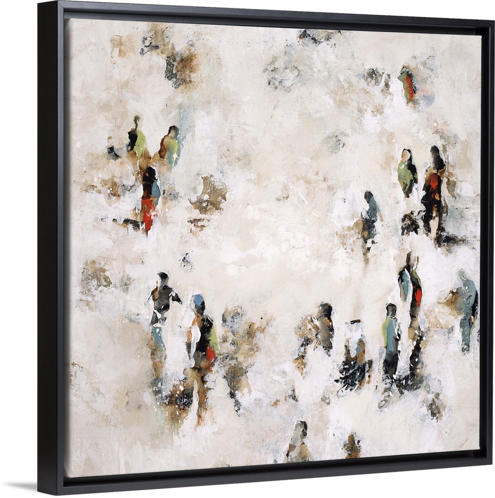 <p>Contemporary painting of figures in an empty hollow looking space.</p>