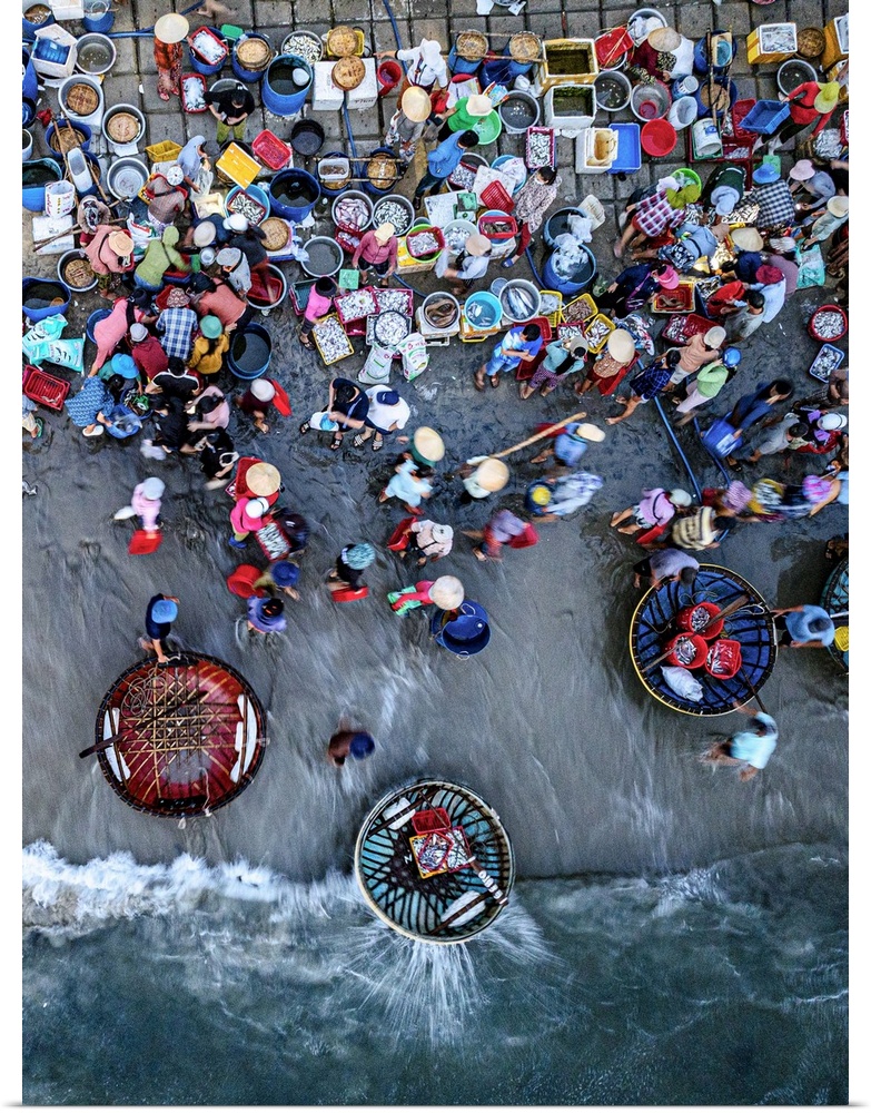 <p>Drone view of the crowded coastal fish market in Tam Tien, Quang Nam Province, Central Vietnam.</p>