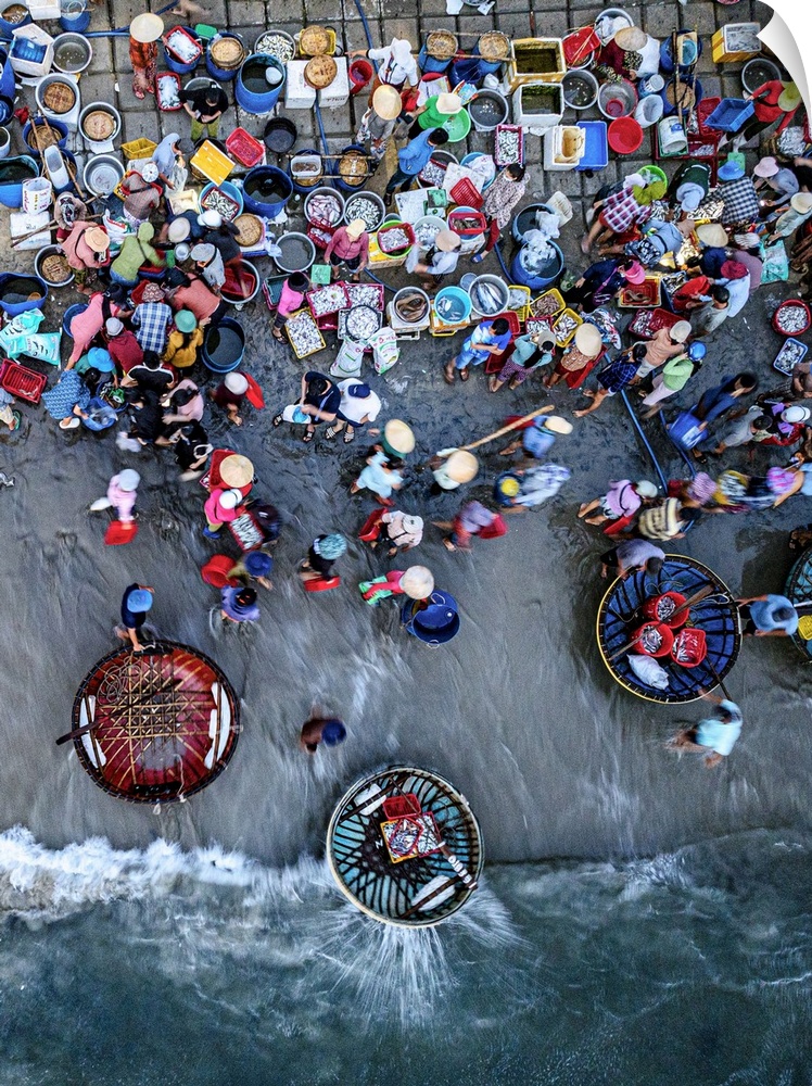 <p>Drone view of the crowded coastal fish market in Tam Tien, Quang Nam Province, Central Vietnam.</p>
