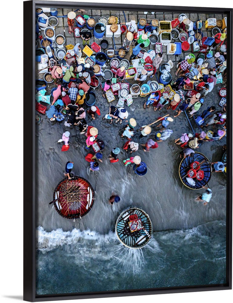 <p>Drone view of the crowded coastal fish market in Tam Tien, Quang Nam Province, Central Vietnam.</p>