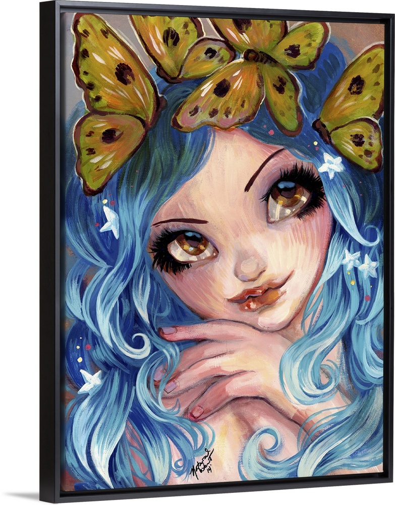 Art Blue Wall Art Contemporary Art Fantasy People Painting People Portraits Natasha Wescoat Wildlife Insect and Arachnid Butterfly