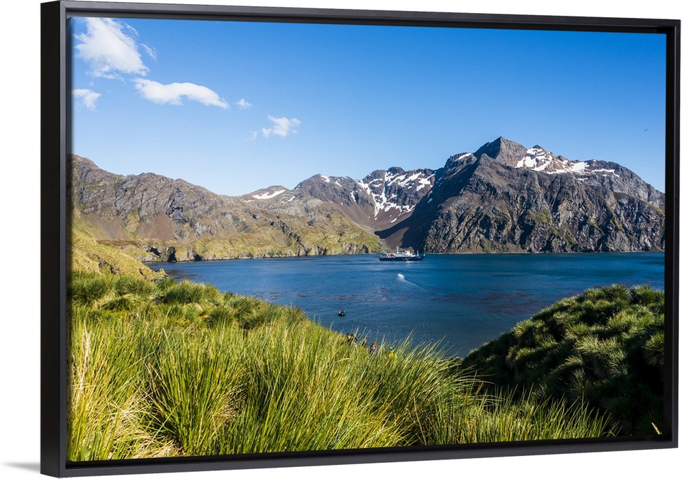 <p>Cruise ship anchoring in the bay of Godthul, South Georgia, Antarctica, Polar Regions</p>