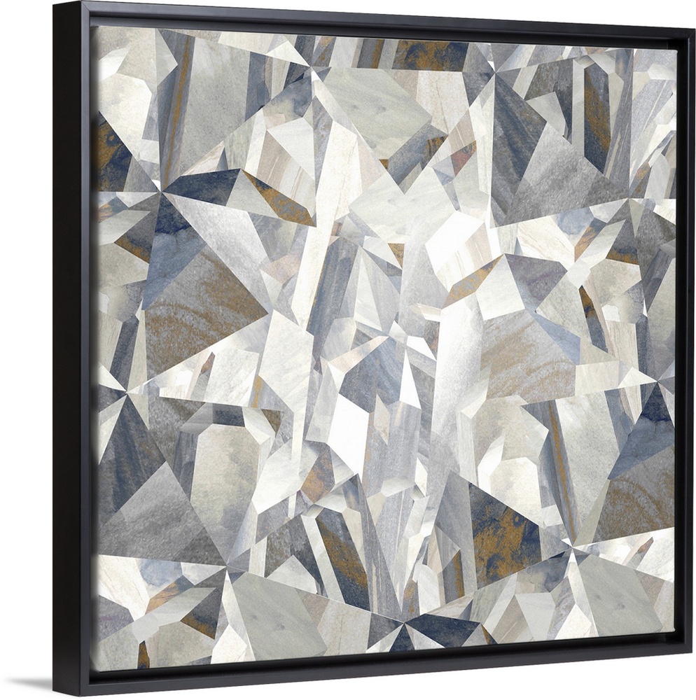 <p>Square decor resembling the texture of a crystal close-up made in shades of blue, gray, gold, and white.</p>