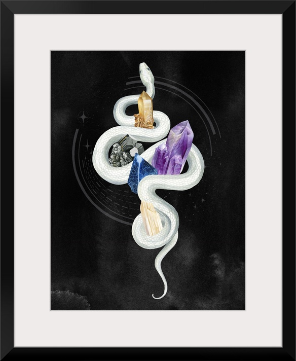 Art Bohemian Black and White Wall Art College Dorm Decor Decorative Art Geology Crystals and Geodes Painting Grace Popp Watercolor Wildlife Reptile Snake