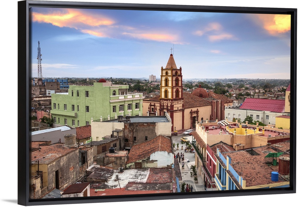 <p>Cuba, Camaguey, Camaguey Province, City view looking towards Iglesia De Nuestra Se..ora De La Soledad</p>