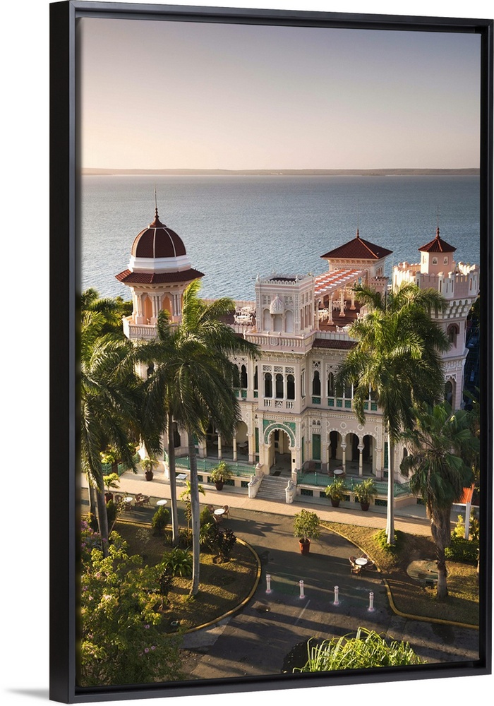 <p>Cuba, Cienfuegos Province, Cienfuegos, Punta Gorda, Palacio de Valle, restored sugar baron house, elevated view</p>
