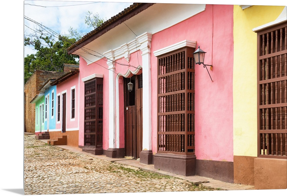 <p>Photograph of colorful facades lining a Trinidad streetscape.</p>