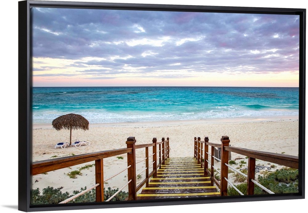 <p>Cuba, Isla de la Juventud, Cayo Largo De Sur, Playa Lindamar, Stairs to beach</p>