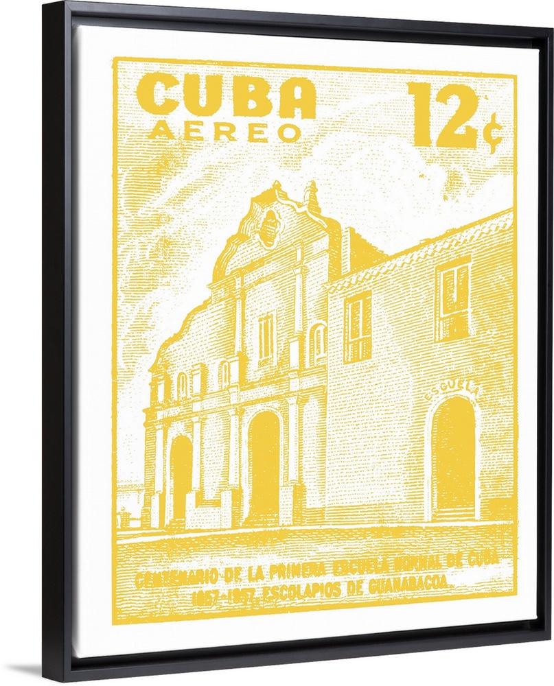 <p>A digital illustration of a Cuba post stamp in yellow.</p>