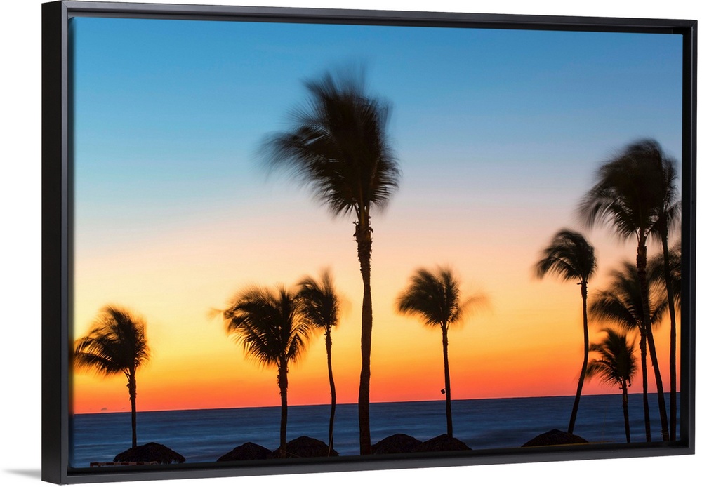 <p>Cuba, Varadero, Palm trees on Varadero beach at sunset.</p>