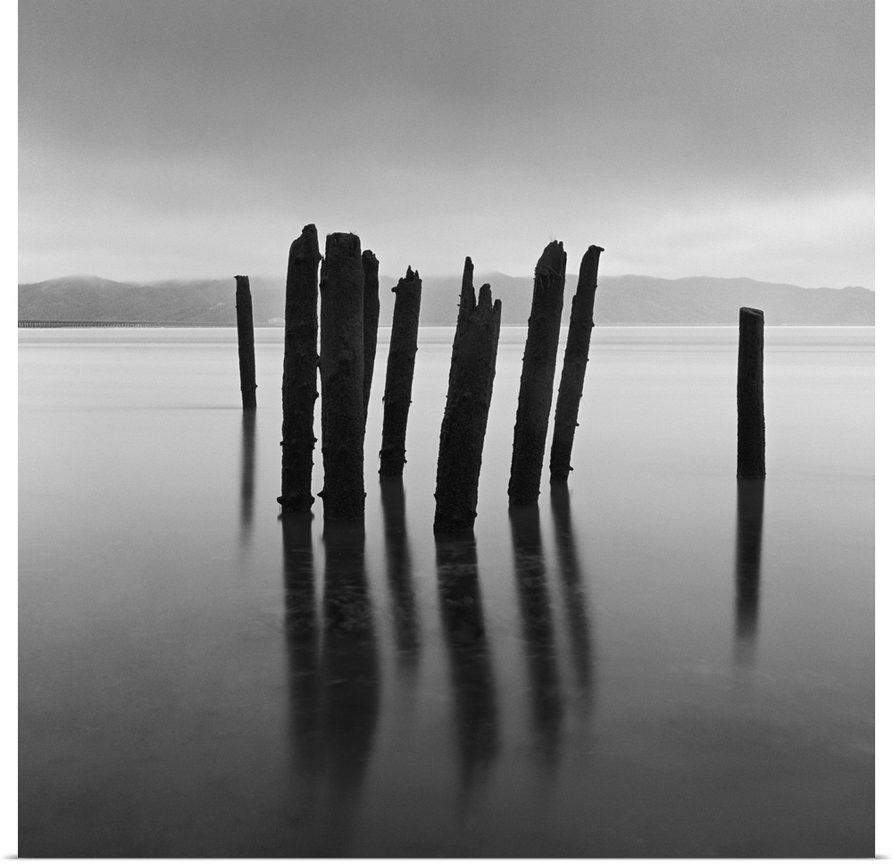<p>Long Exposure of lake and timbers in water at Astoria OR, on a foggy morning</p>