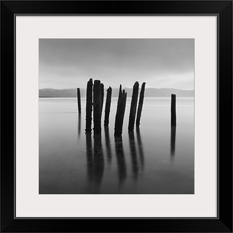 <p>Long Exposure of lake and timbers in water at Astoria OR, on a foggy morning</p>