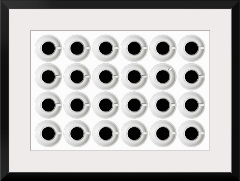 <p>Overhead view of twenty-four cups of coffee.</p>