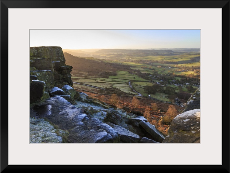 <p>Curbar Edge, at sunrise on a frosty winter morning, Peak District National Park, Derbyshire, England, United Kingdom, Europe</p>
