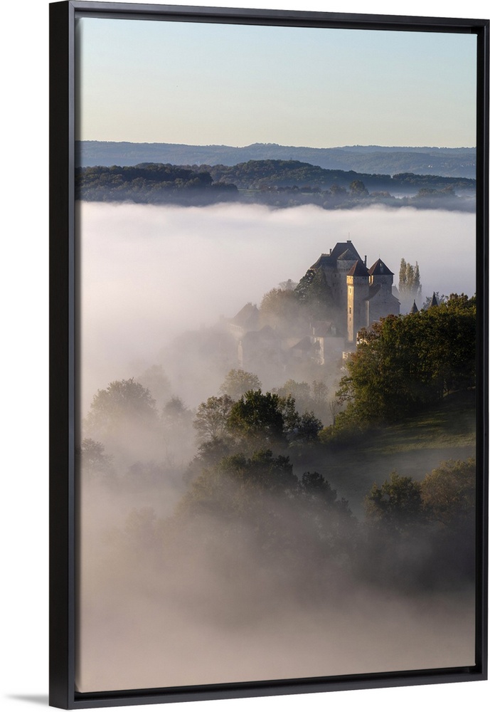 <p>Curemonte labelled l'un des plus beaux villages de France, most beautiful villages in France, in the morning mist, Correze, Nouvelle-Aquitaine, France.</p>