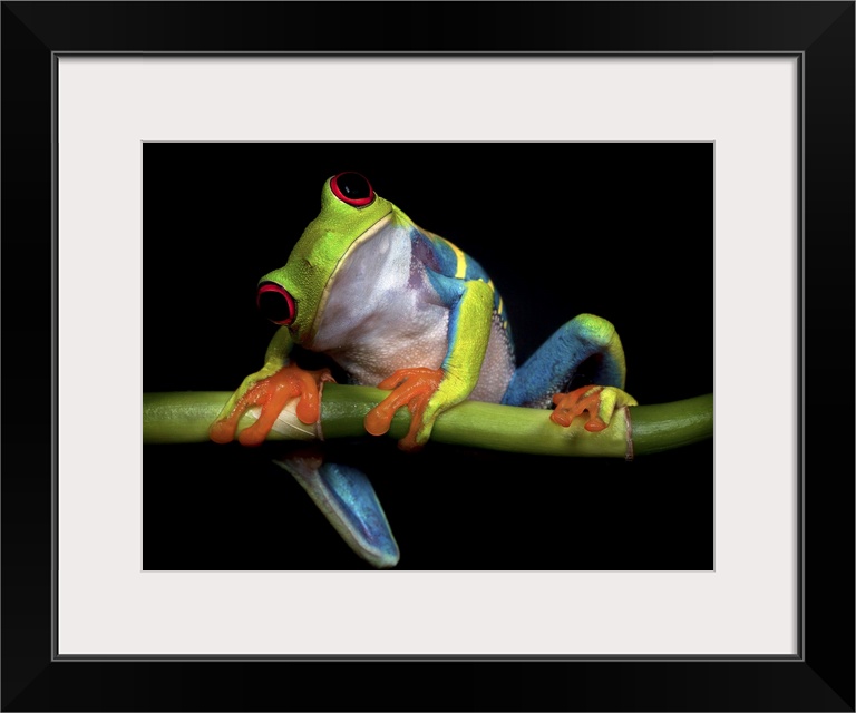<p>A red-eyed tree frog tilting its head with a curious expression.</p>