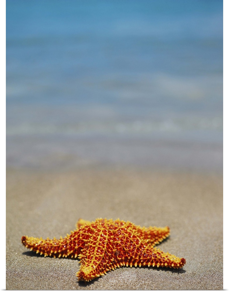 <p>Close-up of a Cushion Starfish (Oreaster reticulatus) on the beach, Providencia, Providencia y Santa Catalina, San Andres y Providencia Department, Colombia</p>