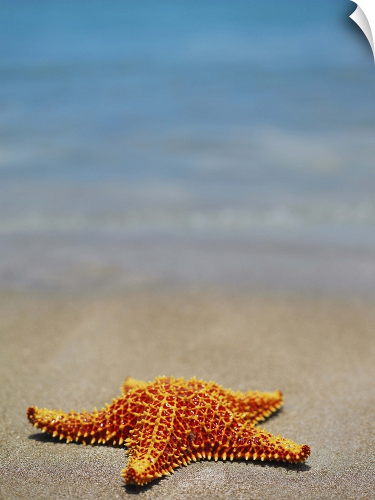 <p>Close-up of a Cushion Starfish (Oreaster reticulatus) on the beach, Providencia, Providencia y Santa Catalina, San Andres y Providencia Department, Colombia</p>