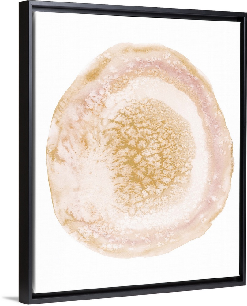 <p>Contemporary abstract watercolor painting of a pastel pink geode against a white background.</p>