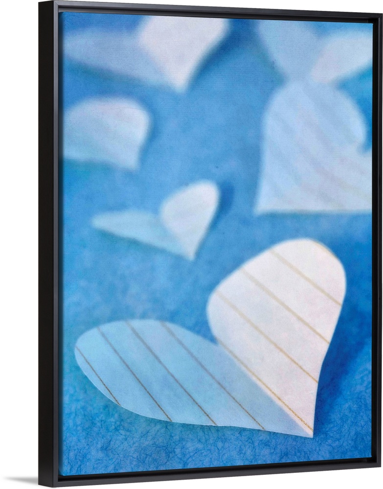 <p>Paper hearts, a sweet still life in blue tones</p>
