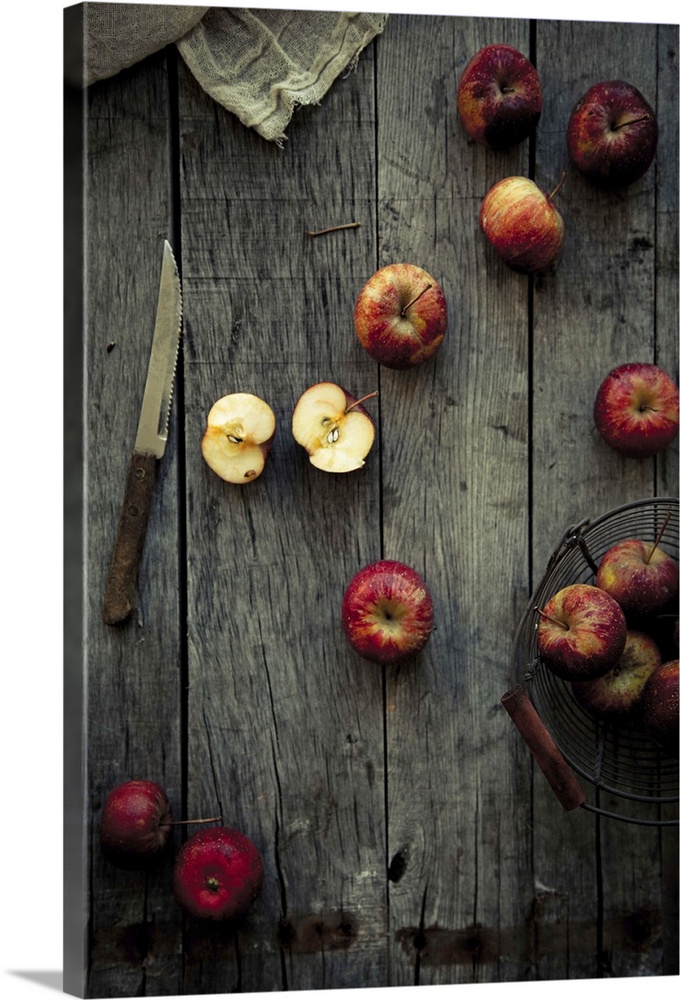 <p>There are some cute apples on the wodden board.</p>