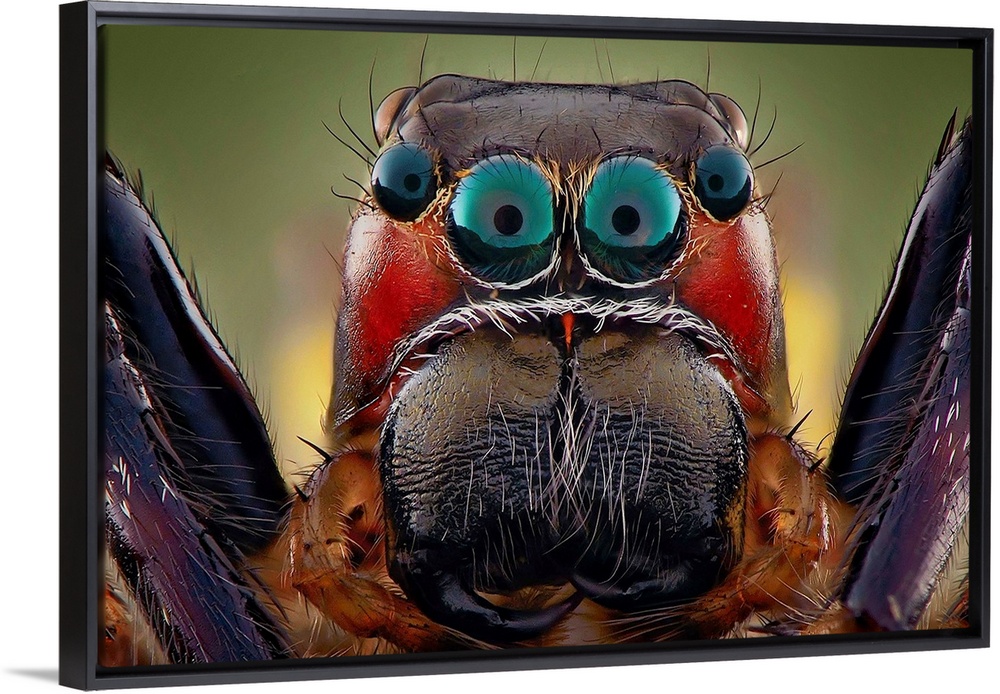 <p>Macro photo of the large eyes of a tarantula spider.</p>