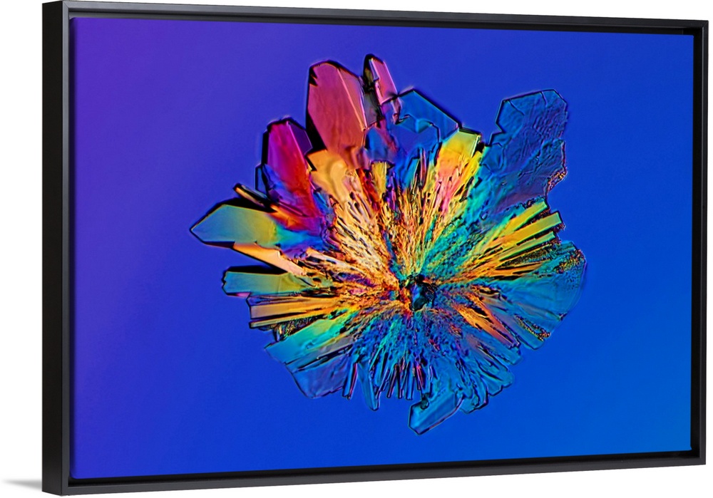 <p>Cysteine crystal. Polarized light micrograph of a spherulite (spherical) crystal of the non-essential amino acid cysteine. Amino acids are the building blocks of proteins. Non-essential amino acids are those that can be synthesised by the body and so do not need to come from the diet. Cysteine is an important structural and functional component of many enzymes (proteins that catalyse metabolic reactions). Magnification: x450 when printed at 10 centimetres tall.</p>