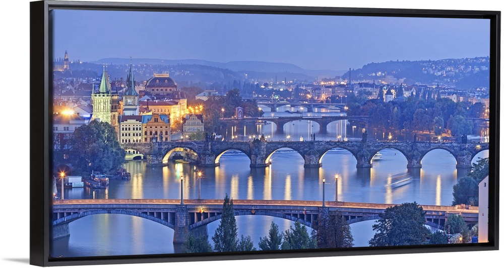 <p>Bridges over the river in Prague, Czech Republic, at night.</p>