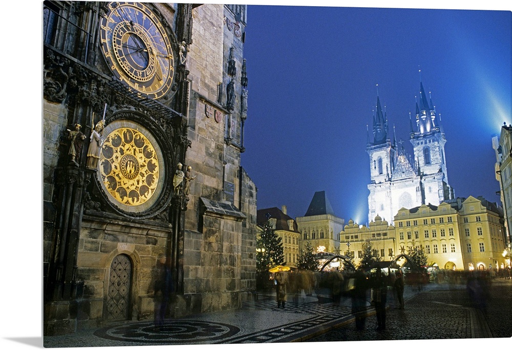 <p>Czech Republic, Prague, Old town square and church of Our Lady and Town Hall Horologe at night</p>